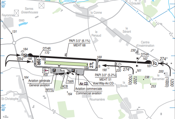 RWY 09 | RWY 27 | Entrées/Sorties |