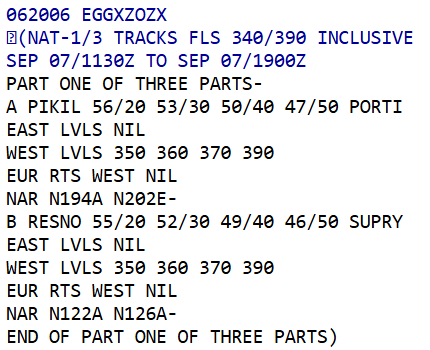 La nomenclature d'un NAT Track Message est toujours la même. Voici une description du track A du NAT Track Message ci-dessus: