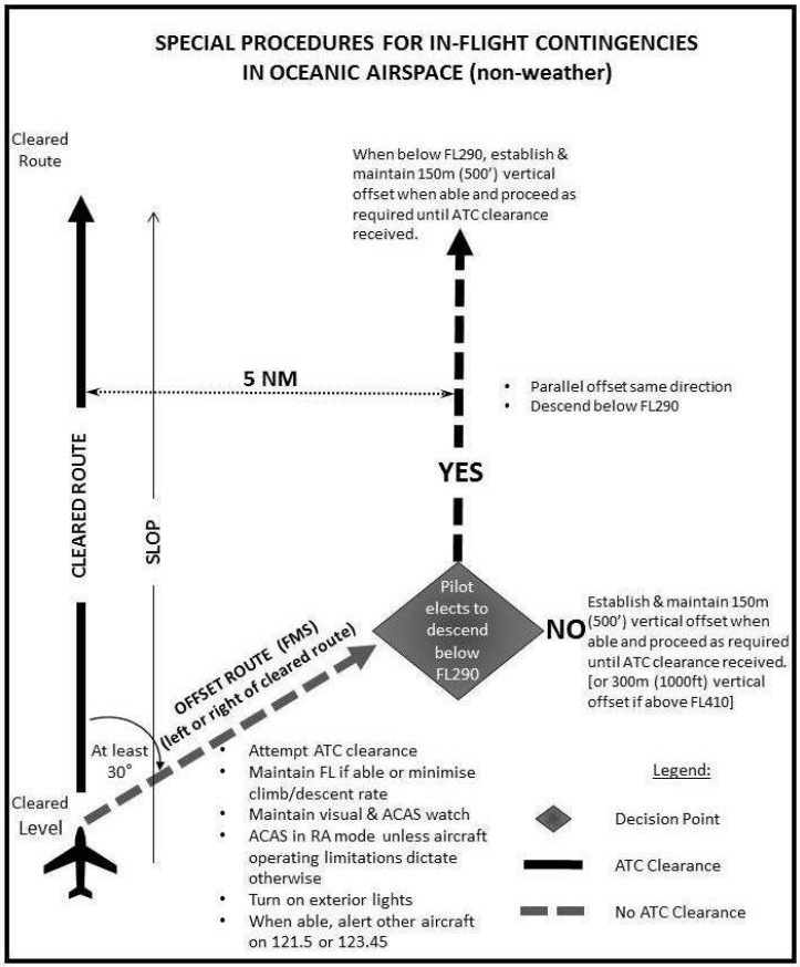 Lorsque certains évènements ne nous permettent plus de suivre notre notre route ou notre altitude, il est nécessaire de suivre des procédures spéciales. Ces procédures sont publiées dans le Doc 007 sous le nom de contingency procedures en anglais. Les raisons les plus probables menant au suivi de ces procédures sont: