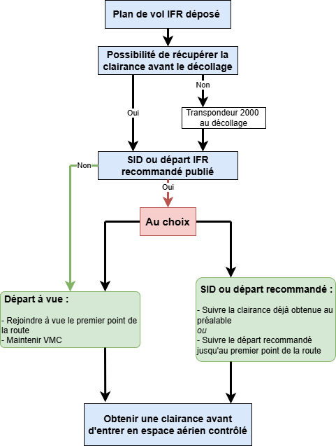 Deux cas de figure s'offrent à vous : soit vous pouvez récupérer une clairance de départ avant le décollage (par radio ou par téléphone), soit c'est impossible.