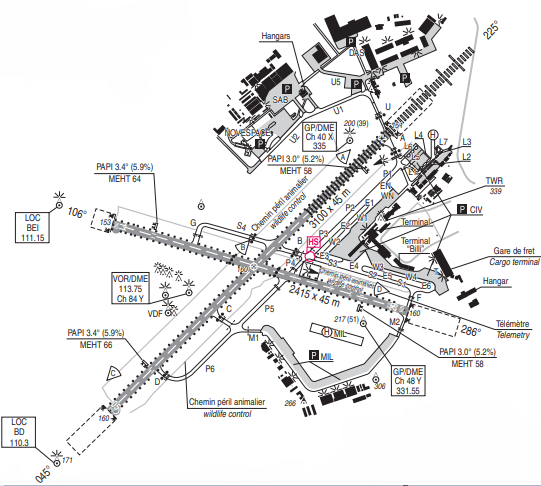 - La piste 29 est homologuée pour les approches de précision CAT I. Elle n’est pas équipée de rampe d’approche.