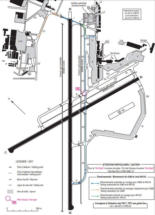 Il faut faire attention au "Hot Spot" de l'aéroport qui se situe à l'intersection des taxiways P3,
